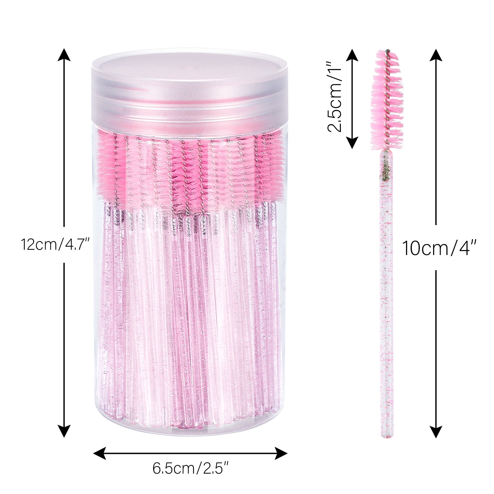 - Packaging & Size: Contains 100pcs pink disposable mascara brushes with container, each brush is 4"/10cm in length and each brush has a 1"/2.5cm brush head, and the container is 4.7''/12cm, 2.5''/6.5cm, making them easy to carry around and suitable for use when traveling.And the container can be reusable, dustproof and easy to store