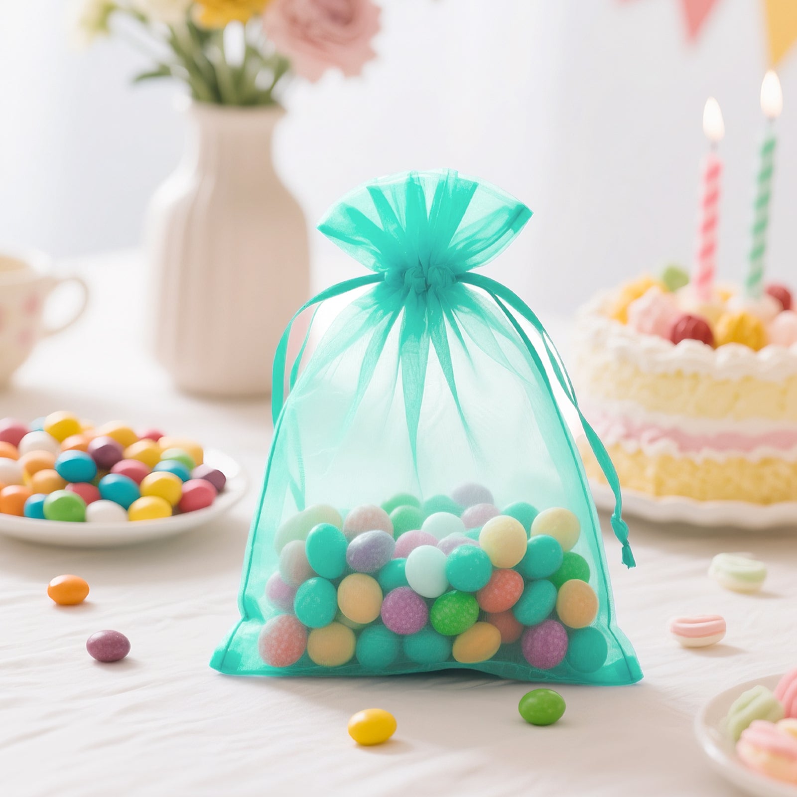 - 【Holiday Organza Bags】:Solid aqua blue organza bags are perfect for holiday party favors, such as Halloween, Thanksgiving, Christmas, New Year, Easter, Valentine's, and other holiday. Sheer organza bags for candy, snacks, goodies, and small festival toys. Tulle bags are suitable for trick or treat candy bags, little gift bags.
