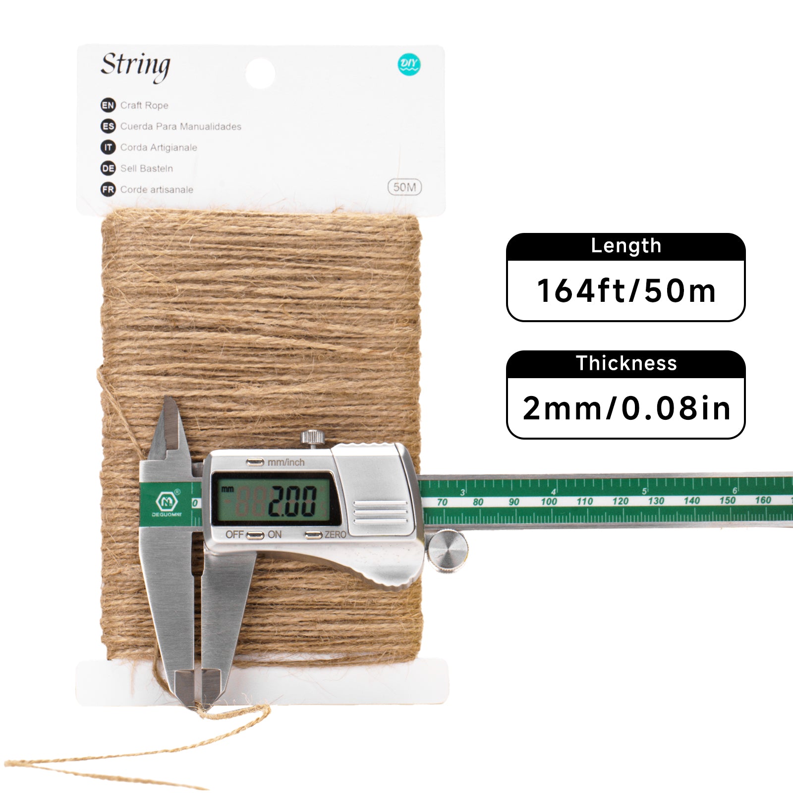 - 【2mm 164Ft Jute Twine】G2PLUS natural jute twine includes a full 164ft roll of 2mm 2-ply twine on a sturdy paper card, easy to store and pull without tangling. Ideal length for daily wrapping, crafting, and gardening projects.