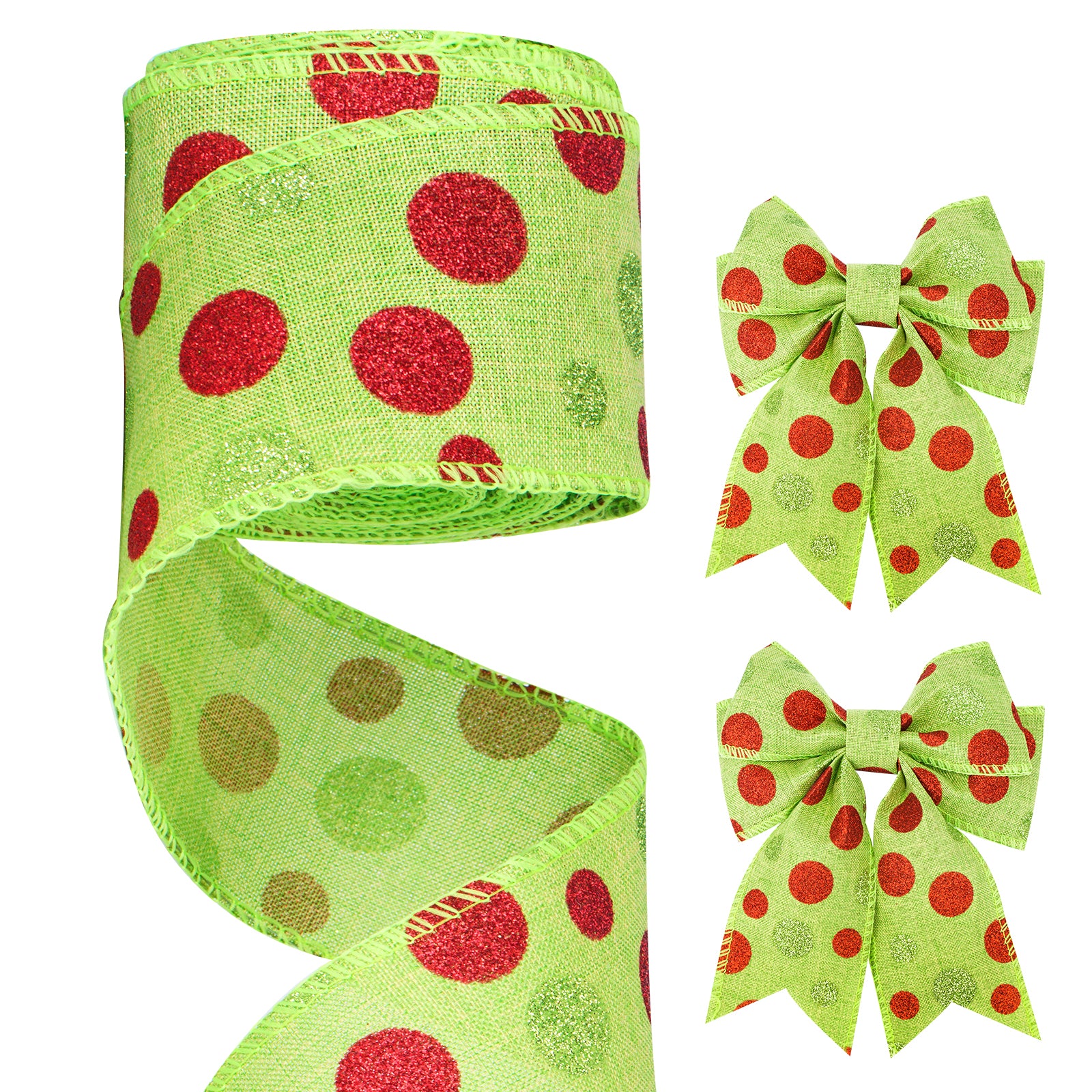 - 【Wired Edge Ribbon】You'll get 1 roll of 63mmx10m wire edged green ribbon with red dots. the wire makes it very easy to create beautiful large bows and is perfect to hold the shape for your bows!!
