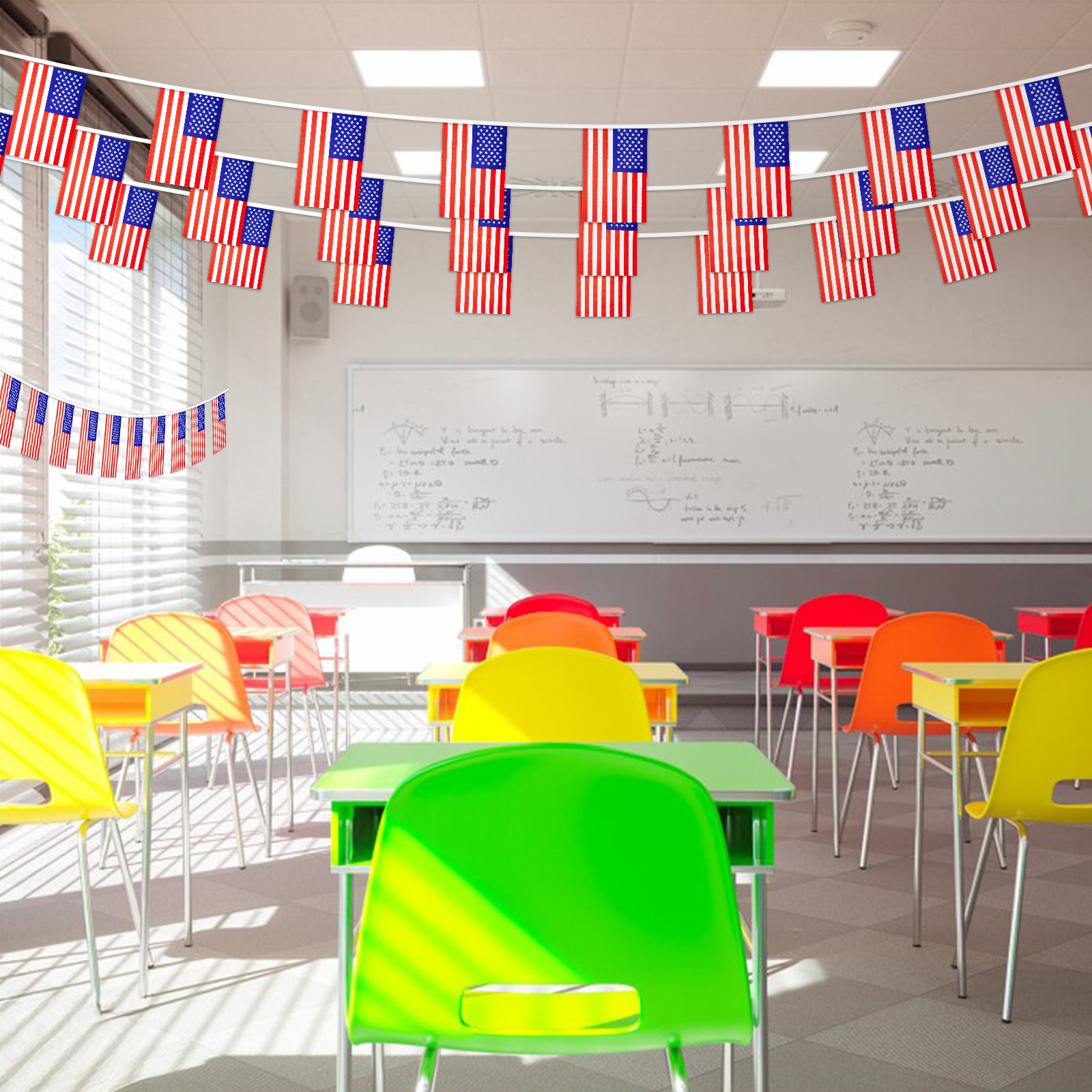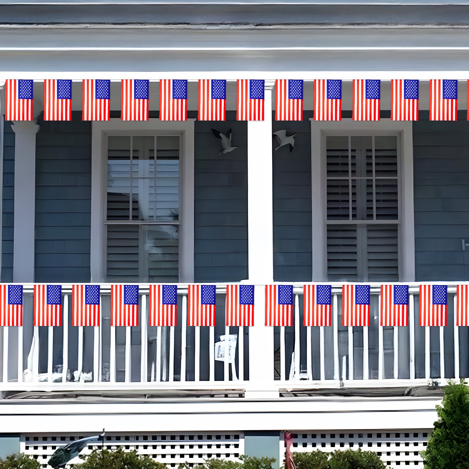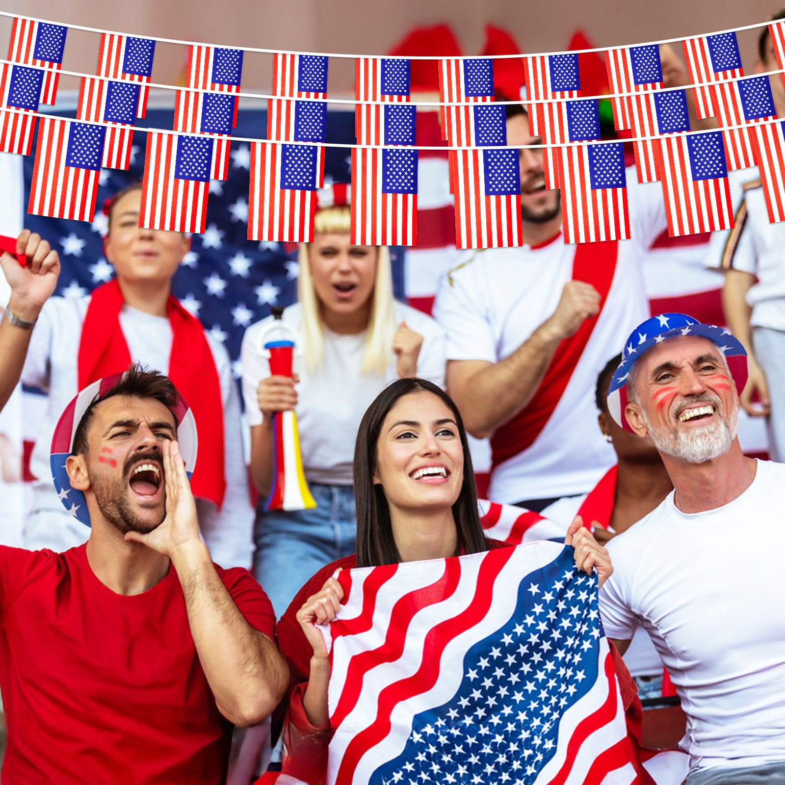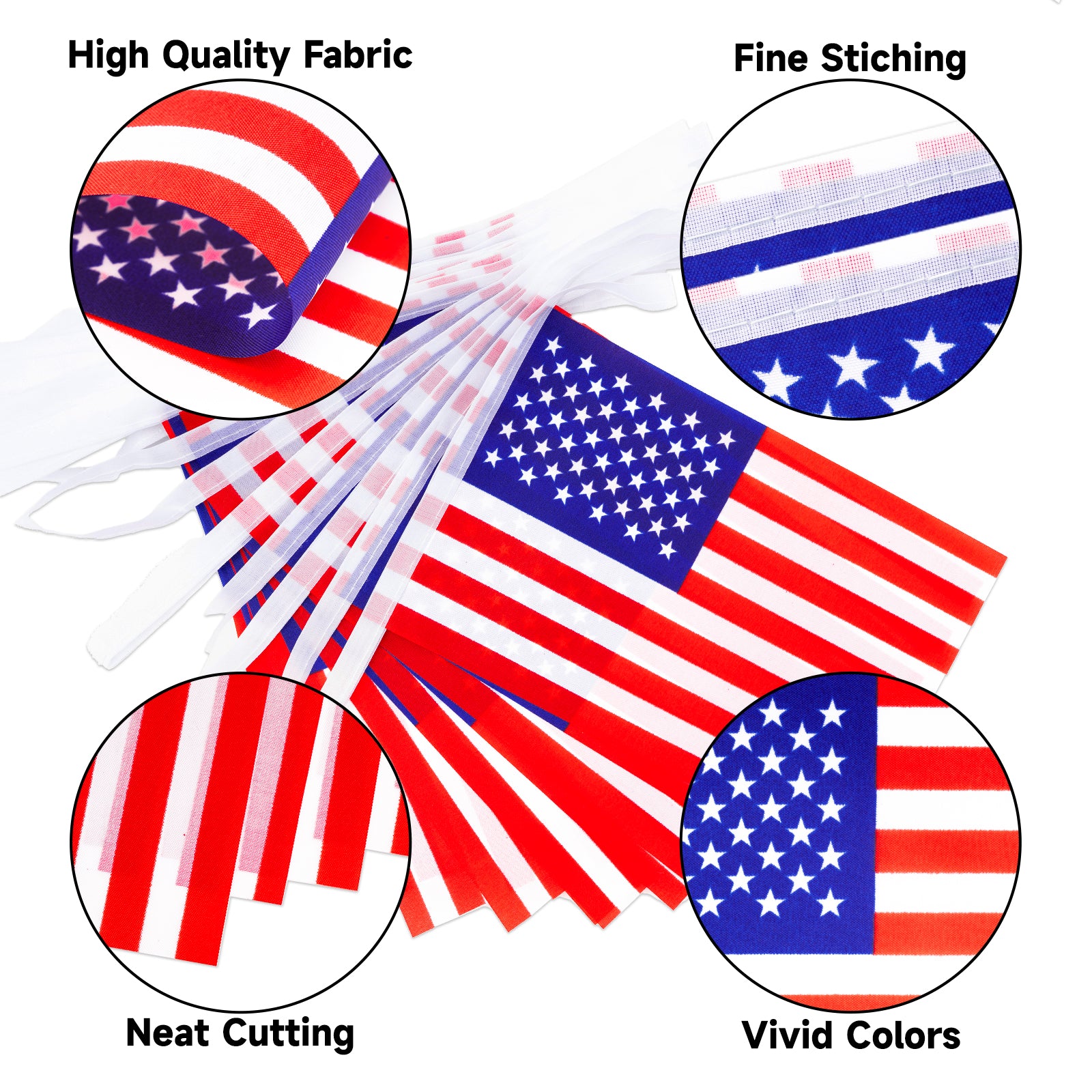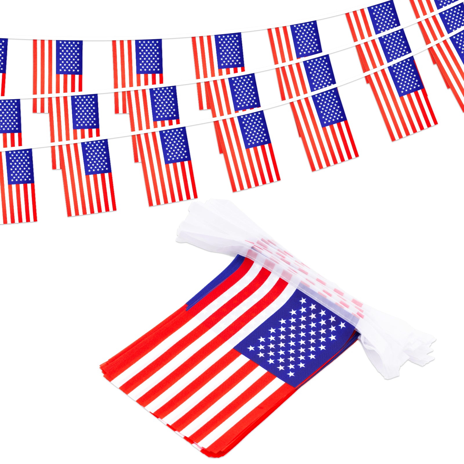 - 【American String Flags】:Total length: Each string flag is 36 feet/11 m long with 40 flags (each American flag's size: 5.5x8.3 inches/14x21 cm). Package includes 1 pack. These American flag pennants are suitable for Independence Day and patriotic events.
