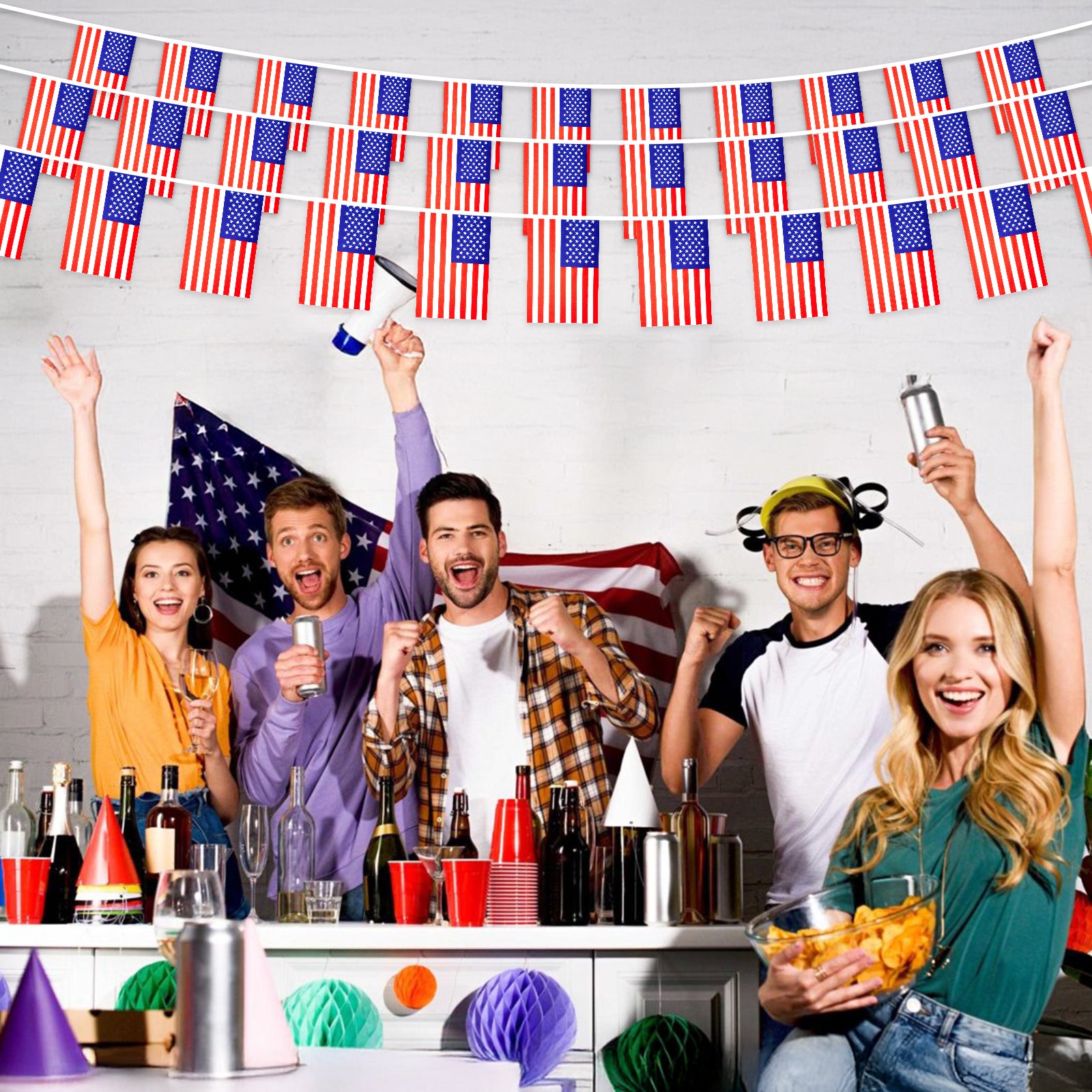 - 【4th of July Banner Flags】:These patriotic decorations are perfect for celebrating July 4th and showing American pride. The American string flags are simple yet powerful decorations that are easy to store and reusable.