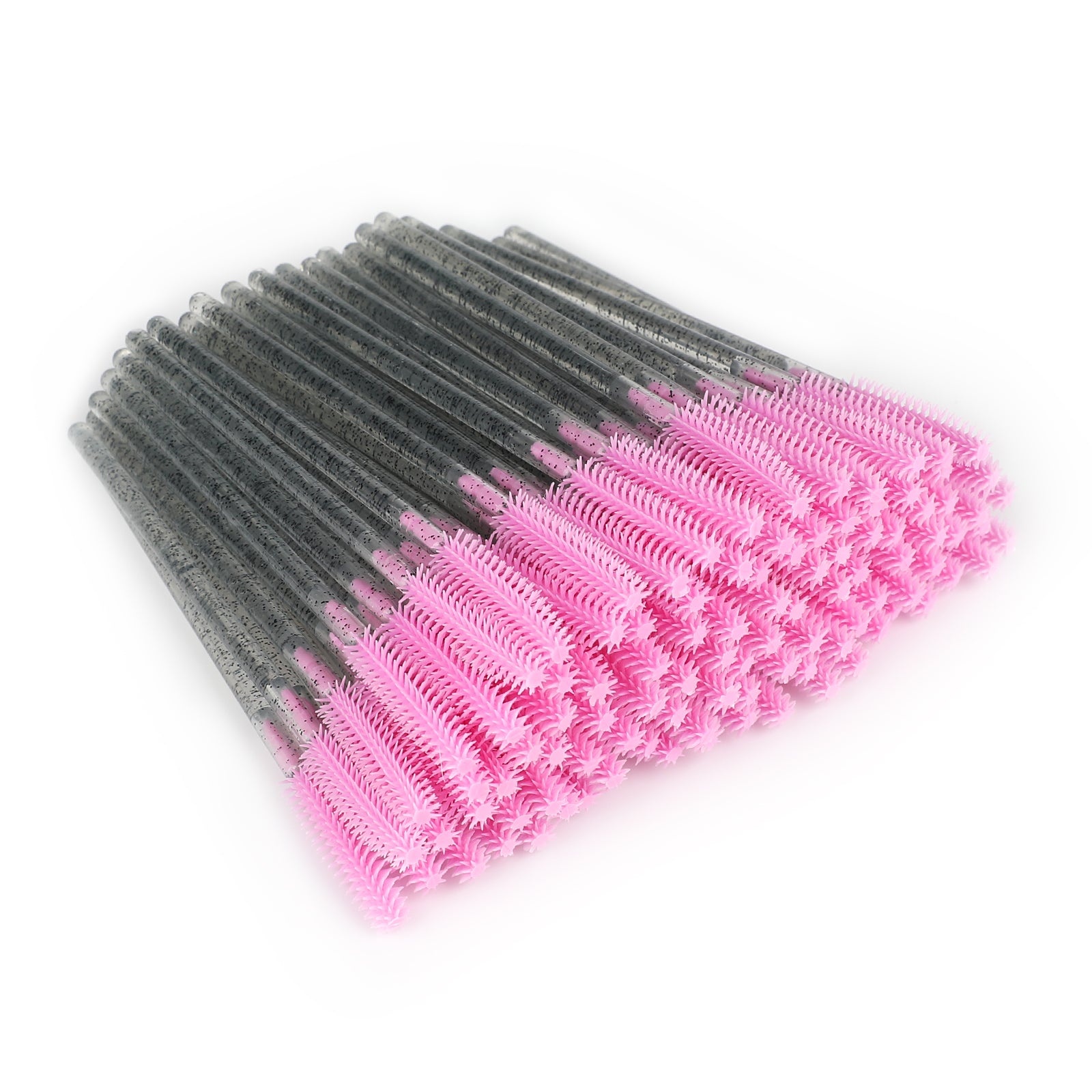 G2PLUS Black and Pink Silicone Eyelash Brushes, 100 PCS Disposable Lash Brushes Spoolies, Silicone Mascara Wands, Silicone Eyelash Spoolies for Eye Lash Extensions