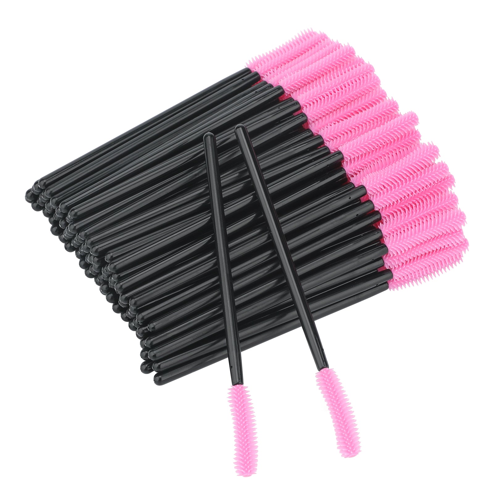 G2PLUS Black and Pink Silicone Eyelash Brushes, 50 PCS Disposable Lash Brushes Spoolies, Silicone Mascara Wands, Silicone Eyelash Spoolies for Eye Lash Extensions