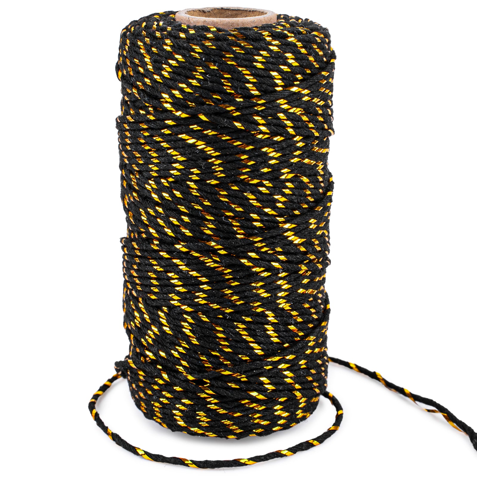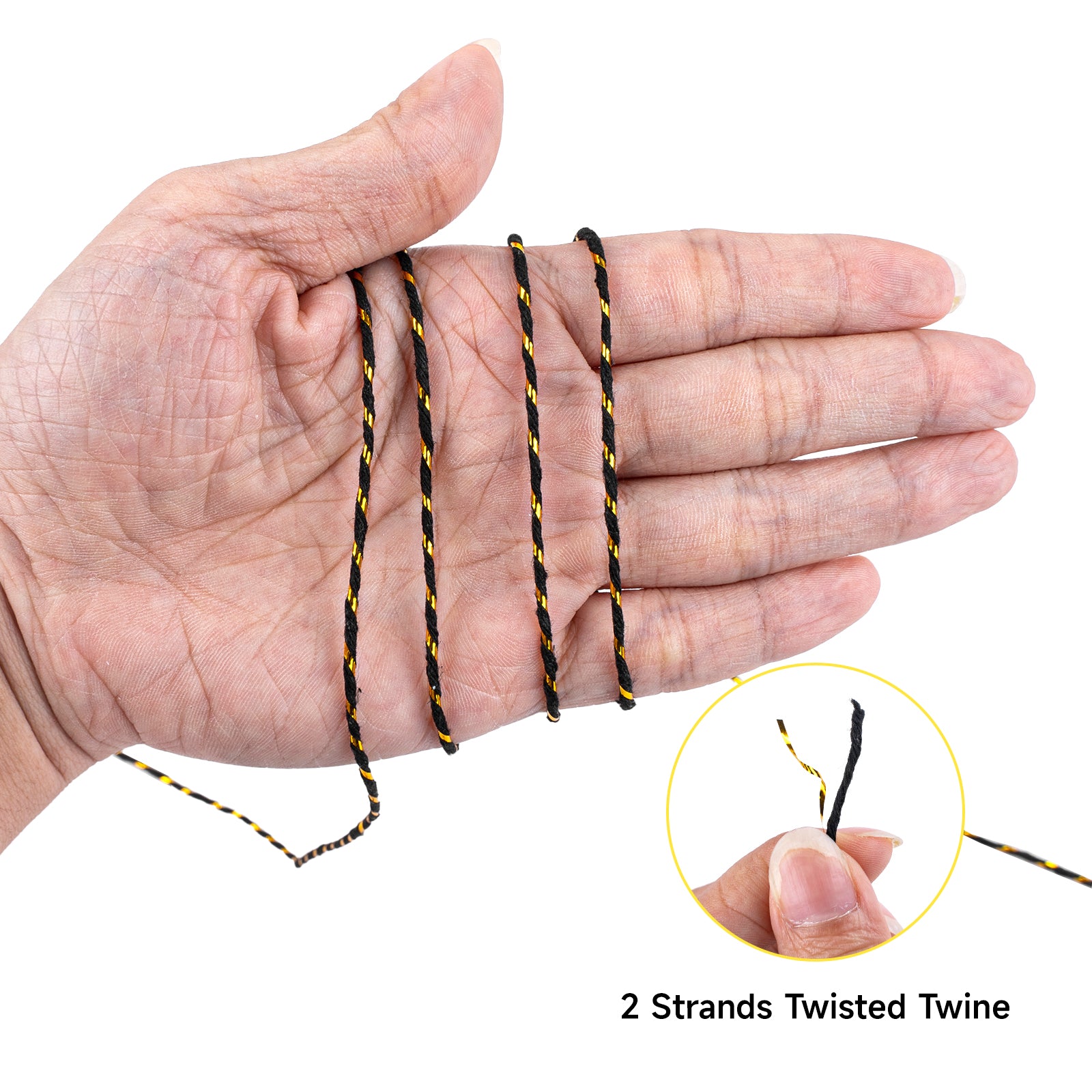 - 【2MM 328FT Black Gold String】:Package includes roll of 328ft/100m of black and gold twisted string, 2mm in diameter. Long enough for all your craft, wrapping, and decorating needs.