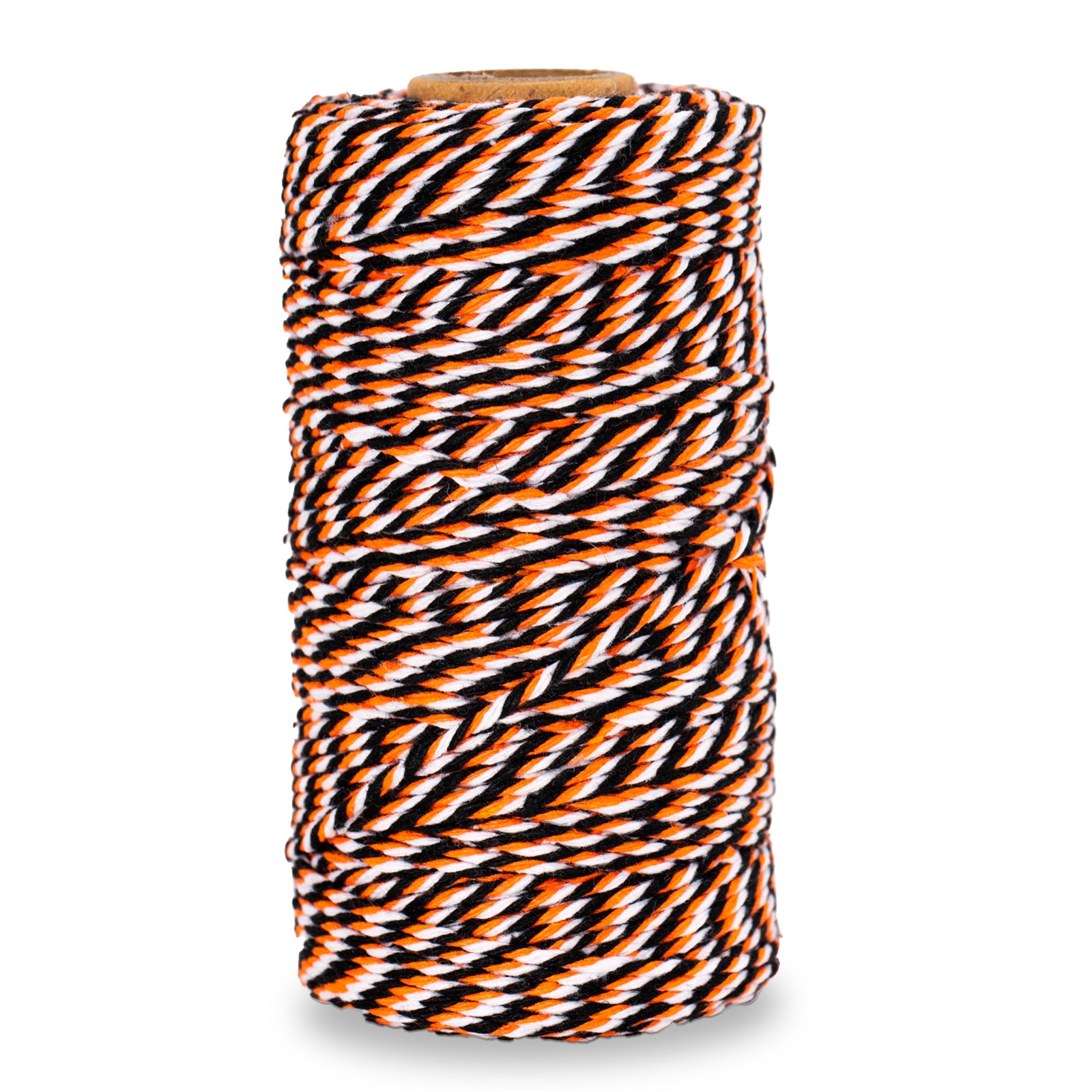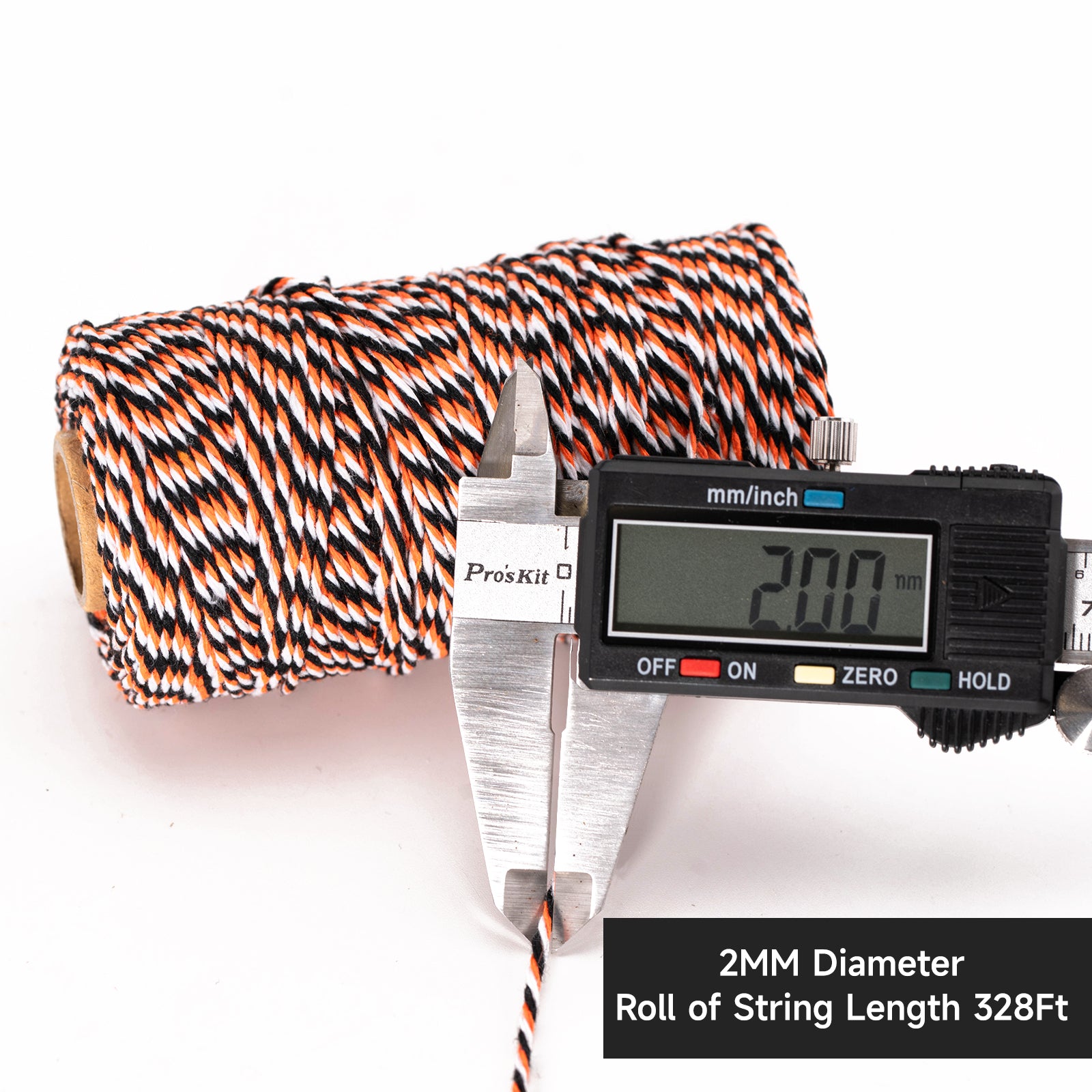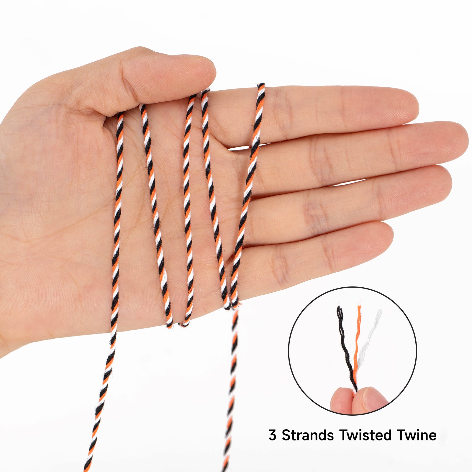 G2PLUS Black Orange White Cotton Twine - 2MM 328ft Baker’s Twine Craft String for DIY Crafts, Gift Wrapping, Treat Bags, Halloween Party Decorations