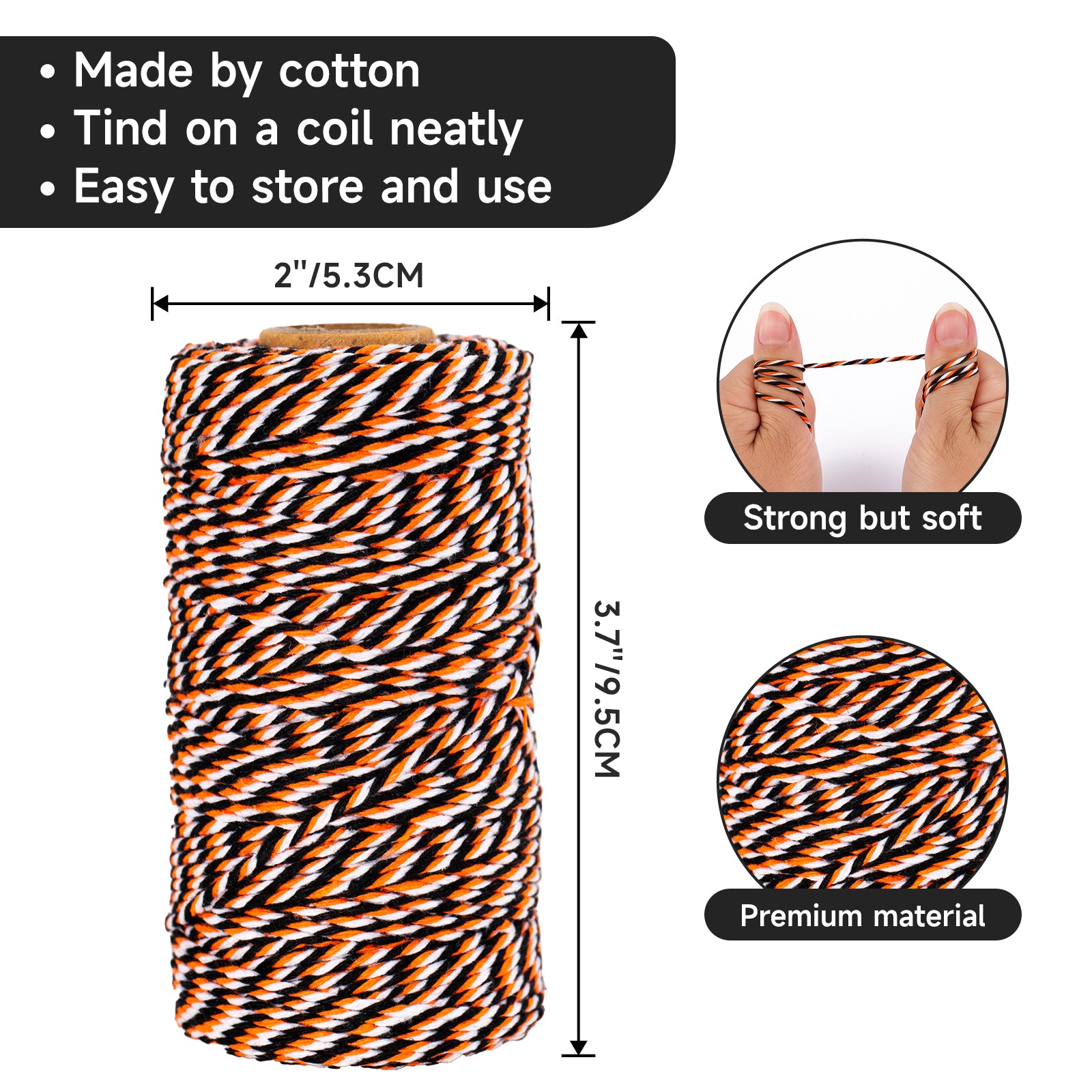 - 【Premium Cotton Twine String】:Halloween gift wrapping string is made of natural cotton, strong yet soft, easy to cut, and not easy to break. Black orange white craft string is suitable for tying candy bags, party favors, and bakery boxes.