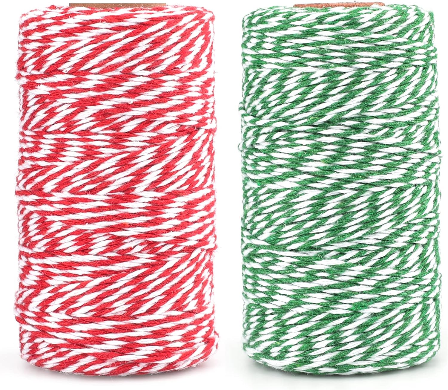 - 【Size of the Cotton Cord】You'll get 2Roll x 100M cotton String; 1 roll red and white string, 1 Roll green and white string. Great for handling Christmas decorations around the house.