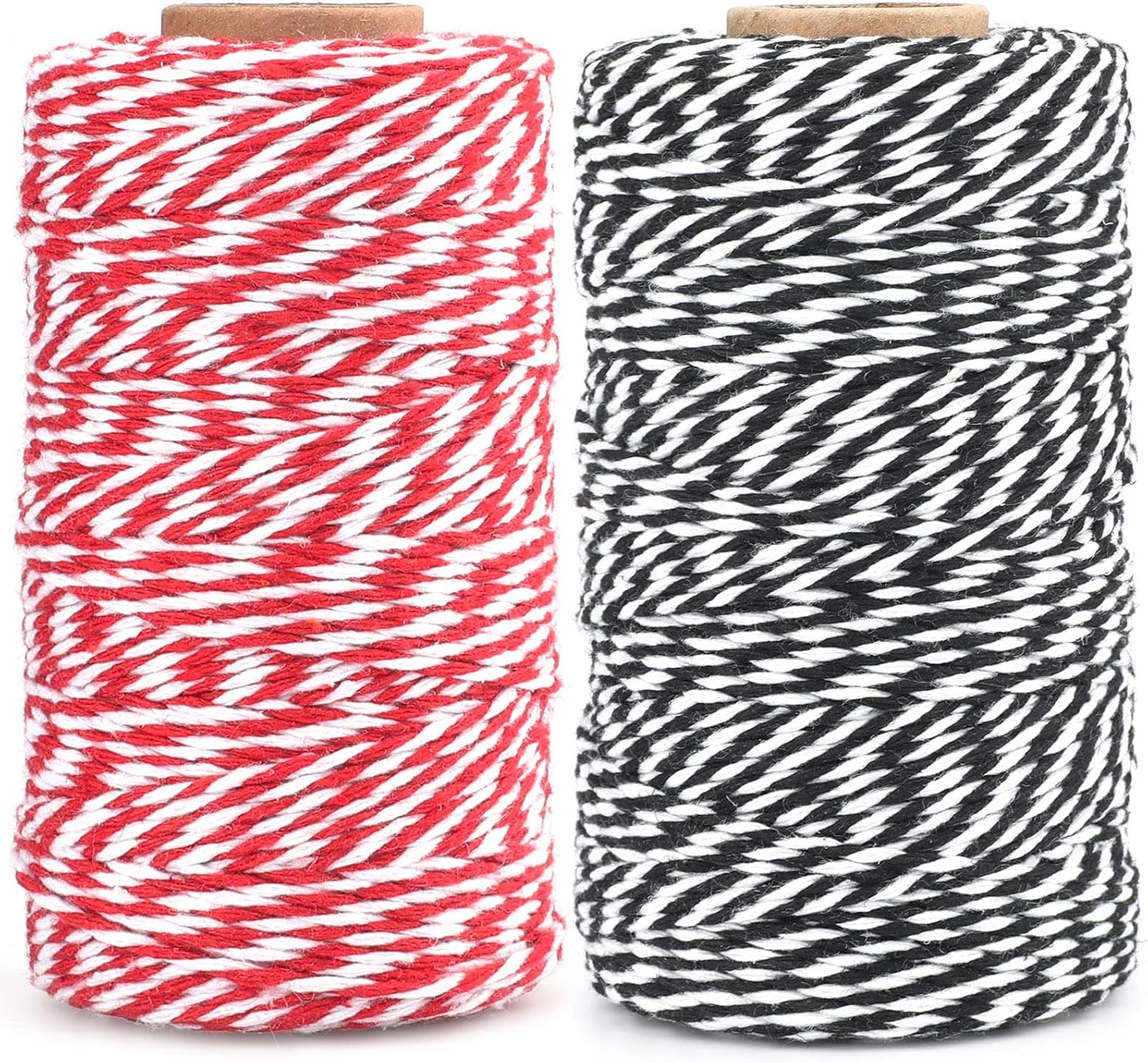 - 【Size of the Cotton Cord】You'll get 2Roll x 100M cotton String; 1 roll red and white string, 1 Roll black and white string. Great for handling Christmas decorations around the house.