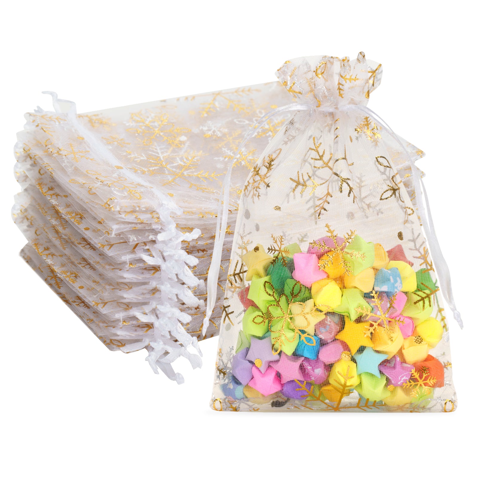 - 【Gold Snowflake Organza Bags】:White organza bags with silver snowflake patterns, snowflake organza gift bags are full of winter wonderland atmosphere. Snowflake organza bags are perfect for winter wonderland baby showers, birthdays, weddings, Christmas, New Year, and Advent calendar gifts. Add a touch to your party favors.