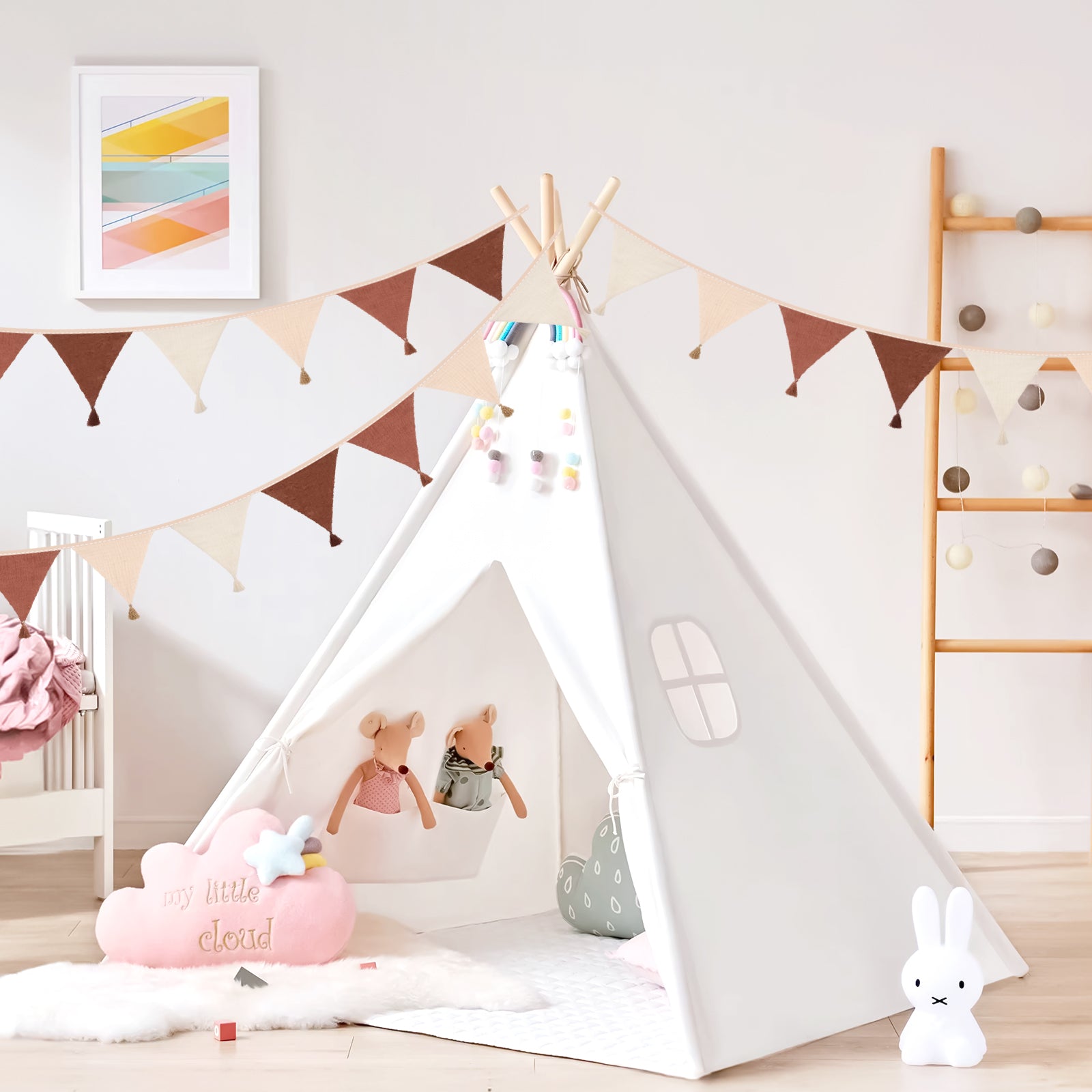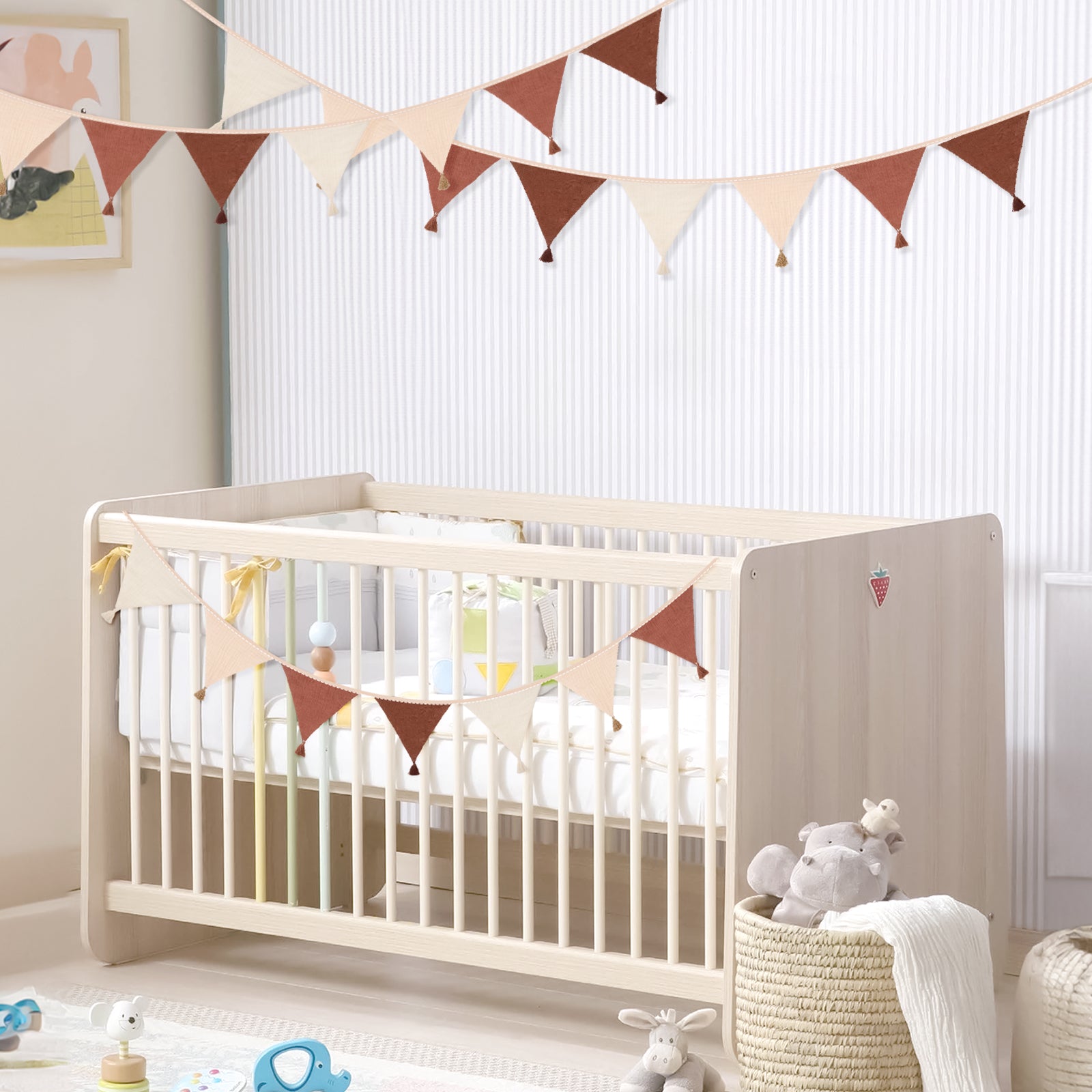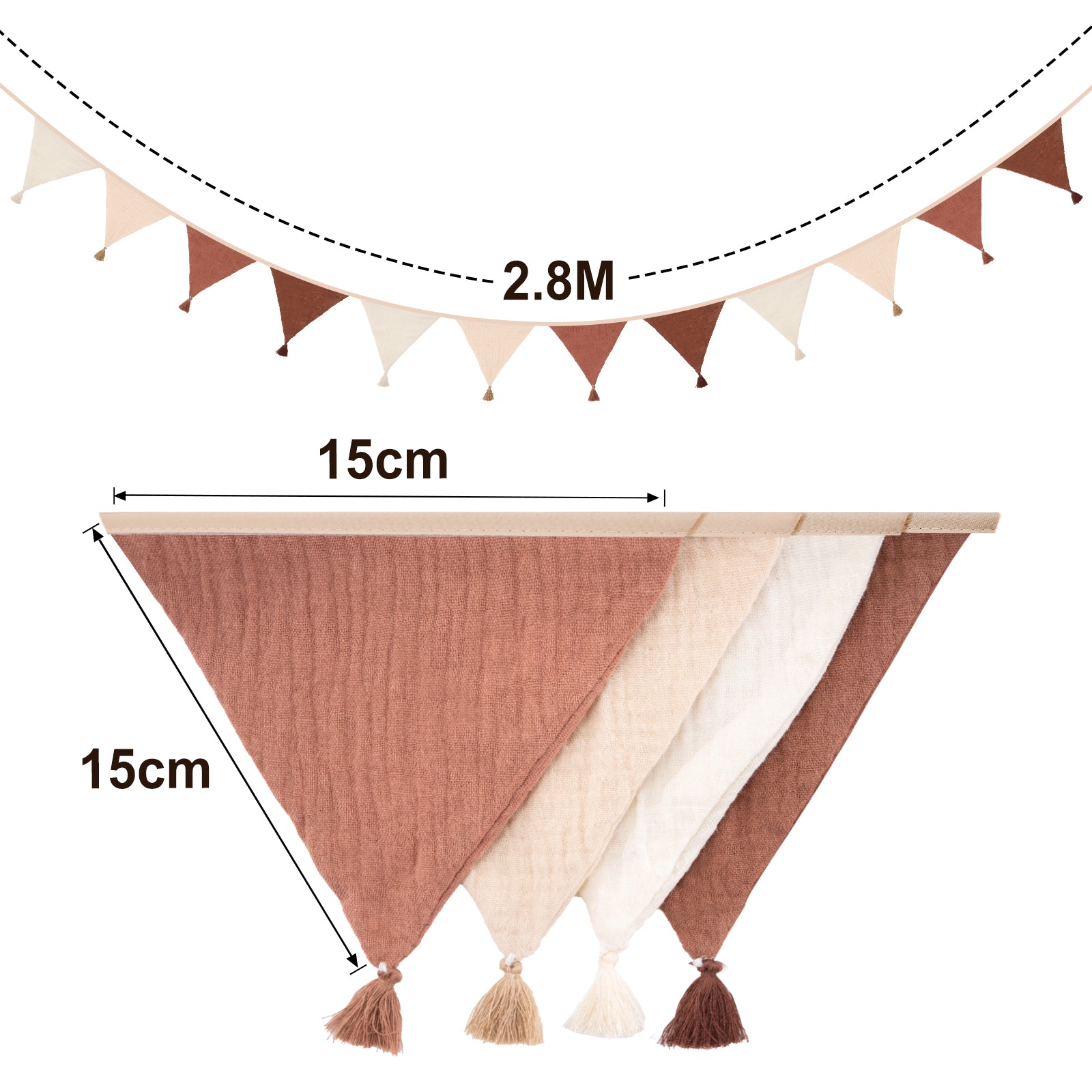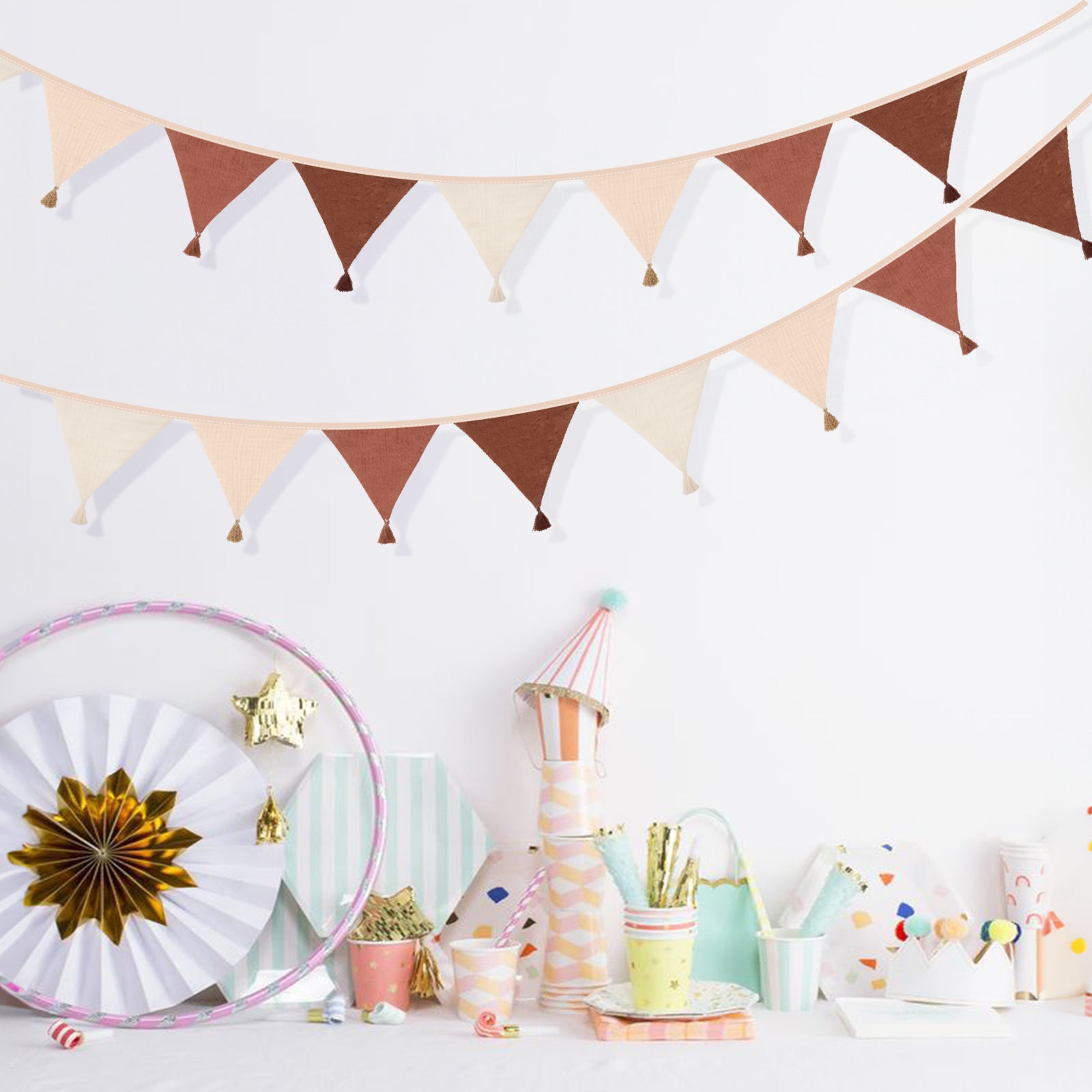- Cotton Fabric Triangle Banner: This triangle pennant banner is made from soft cotton fabric, offering a natural and comfortable feel. Soft and drapery fabric, fine workmanship, strong and sturdy, and can be washable and reusable. The party banner complements boho nursery decor, kids' rooms, and indoor party spaces
