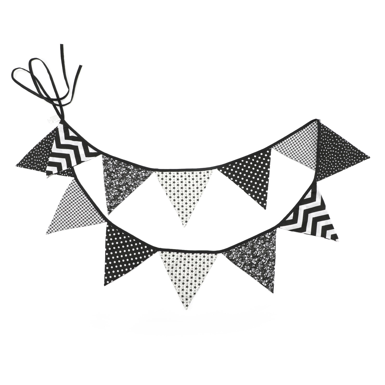 G2PLUS Double Sided Fabric Bunting Banner -12PCS Black Fabric Bunting Nursery - 3.3M Cotton Triangle Pennants for Decorating Boys Bedroom Birthday Parties
