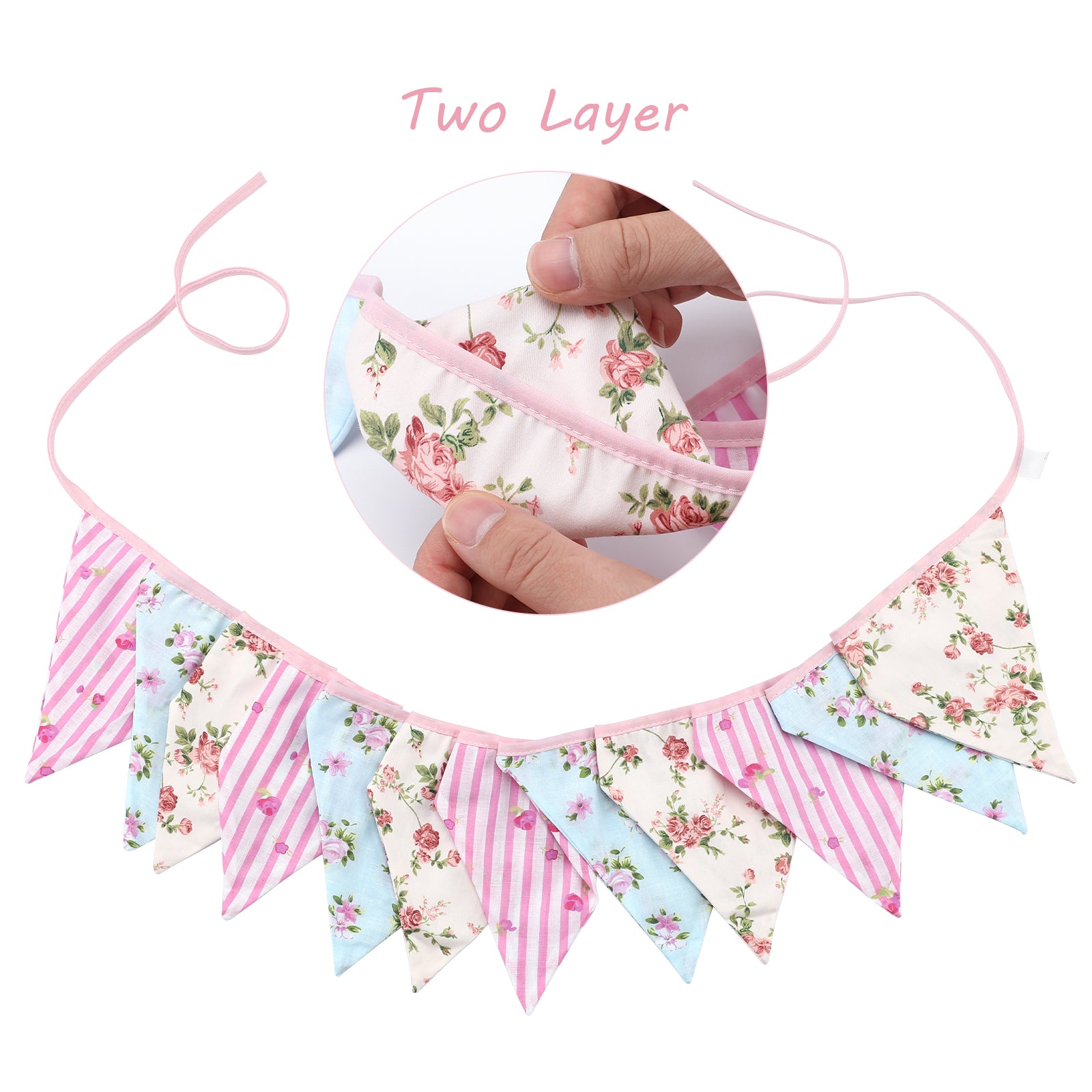 - 【Material】The Fabric bunting banner is made from good quality cotton, well-stitched, with two layers of fabric used to make the bunting double sided, so that it is heavy enough to hang nicely.