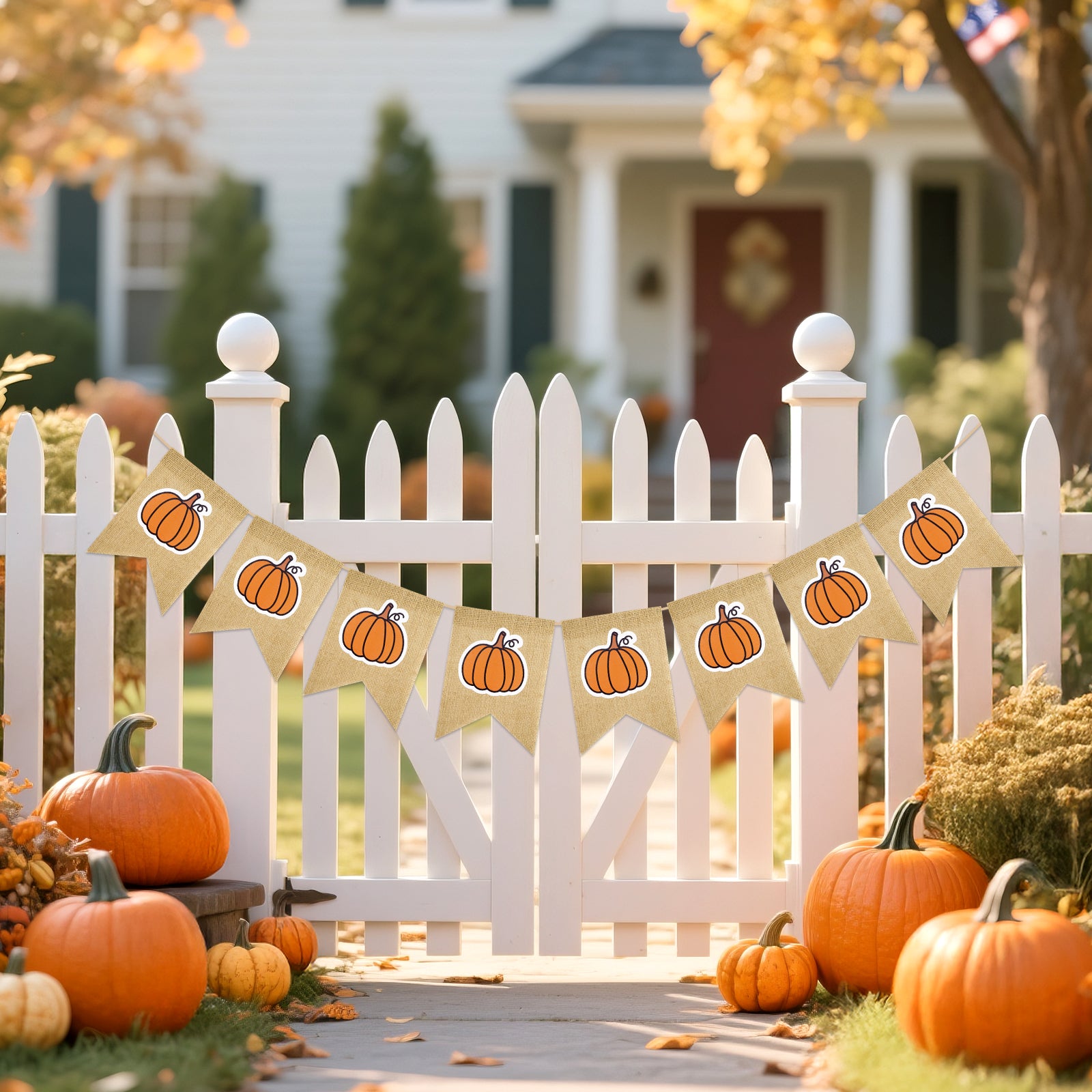 - Pumpkin Burlap Banners: Designed with classic pumpkin motifs in festive orange and earthy brown tones, this fall wall banner brings warmth and charm to your Thanksgiving or Halloween celebration