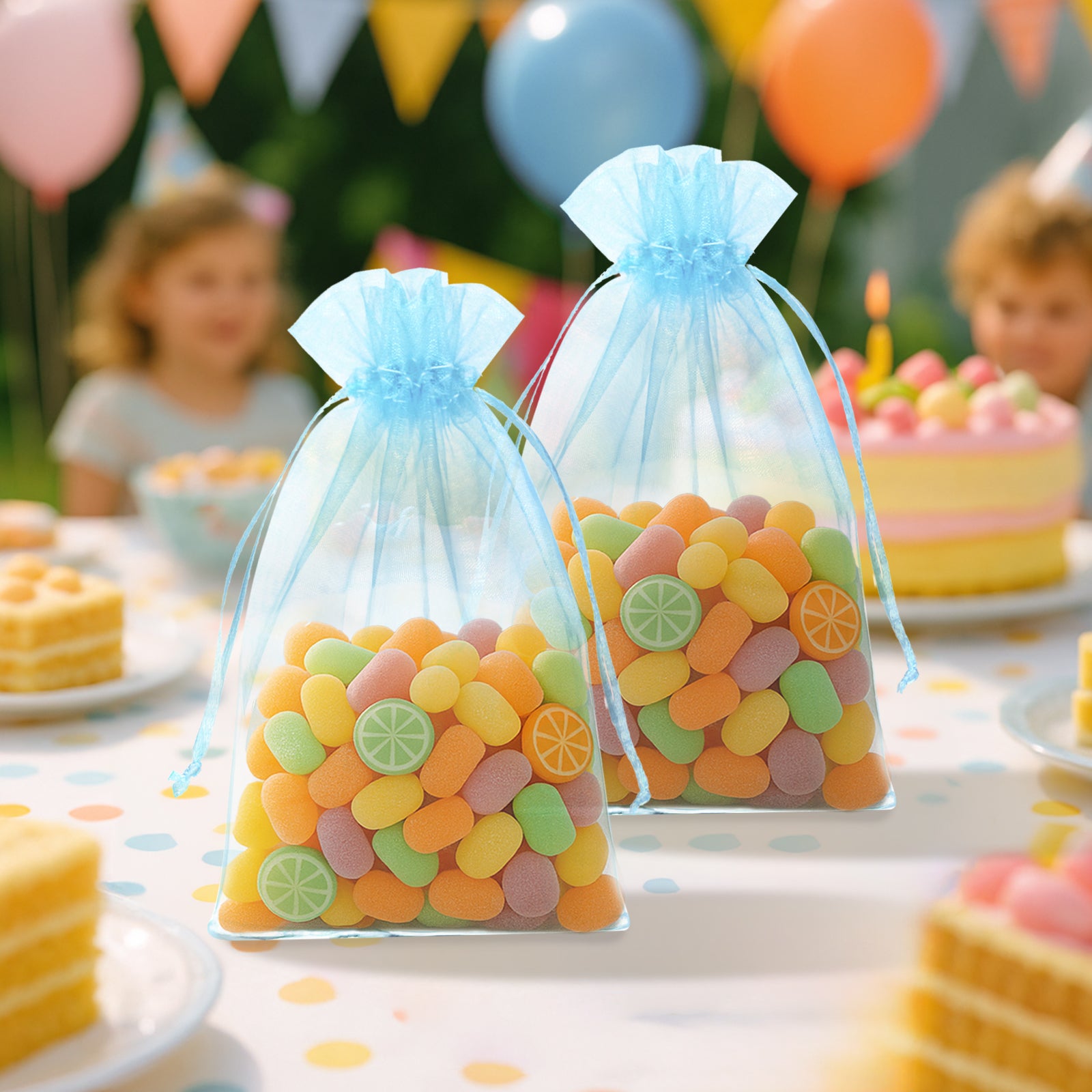 - 【Holiday Organza Bags】:Solid baby blue organza bags are perfect for holiday party favors, such as Halloween, Thanksgiving, Christmas, New Year, Easter, Valentine's, and other holiday. Sheer organza bags for candy, snacks, goodies, and small festival toys. Tulle bags are suitable for trick or treat candy bags, little gift bags.