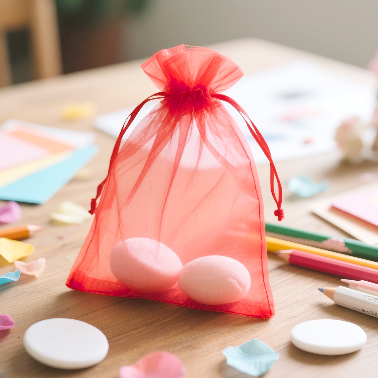 - 【Holiday Organza Bags】: Red organza bags are perfect for holiday party favors, such as Halloween, Thanksgiving, Christmas, New Year, Eastere, Valentine's Day, Mother's Day and other holiday. Sheer organza bags for candy, snacks, goodies, and small festival toys. Tulle bags are suitable for trick or treat candy bags, little gift bags.