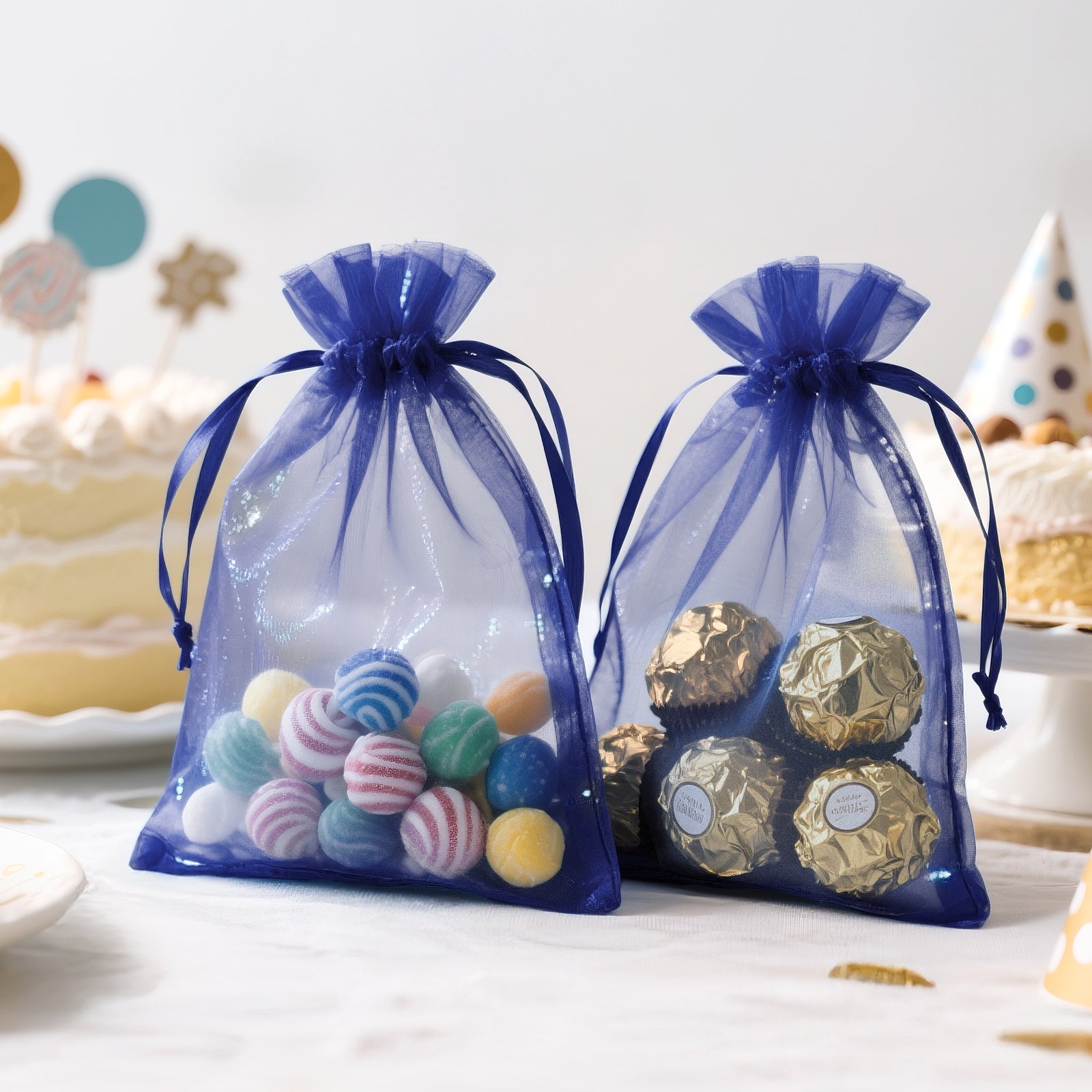 - 【Holiday Organza Bags】:Navy blue organza bags are perfect for holiday party favors, such as Halloween, Thanksgiving, Christmas, New Year, Valentine's Day, Easter, and other holiday. Sheer organza bags for candy, snacks, goodies, and small festival toys. Tulle bags are suitable for trick or treat candy bags, little gift bags.