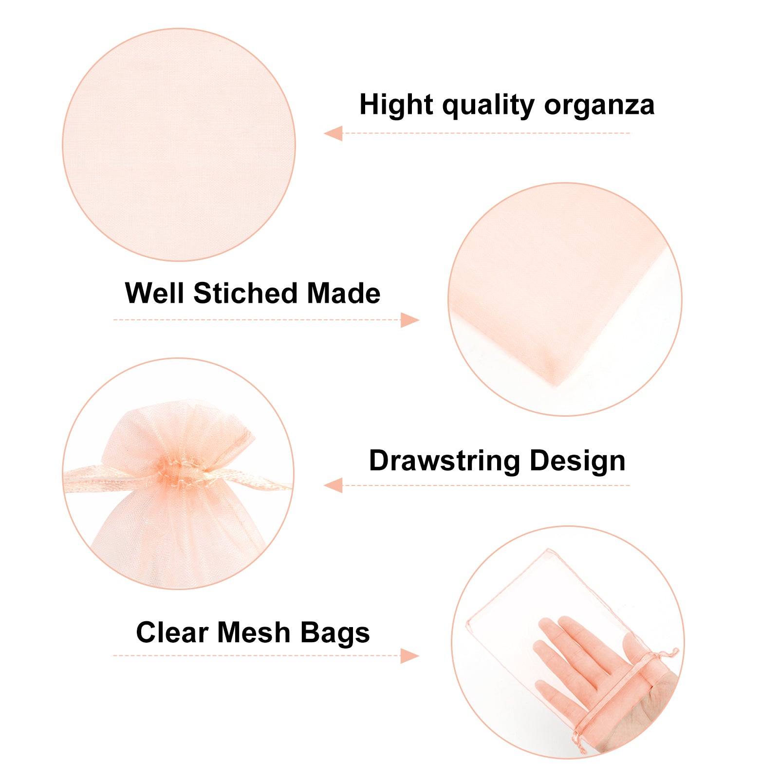 - 【Premium Organza Bags】:G2PLUS Gift bags are made of premium organza material, transparent gift bags and satin drawstring, well-made stitch, and see-through organza bags are so beautiful, keep it clean and have visibility of stored items. Peach organza bags are delicate and elegant, yet simple and big enough to fill with treats and small gifts.