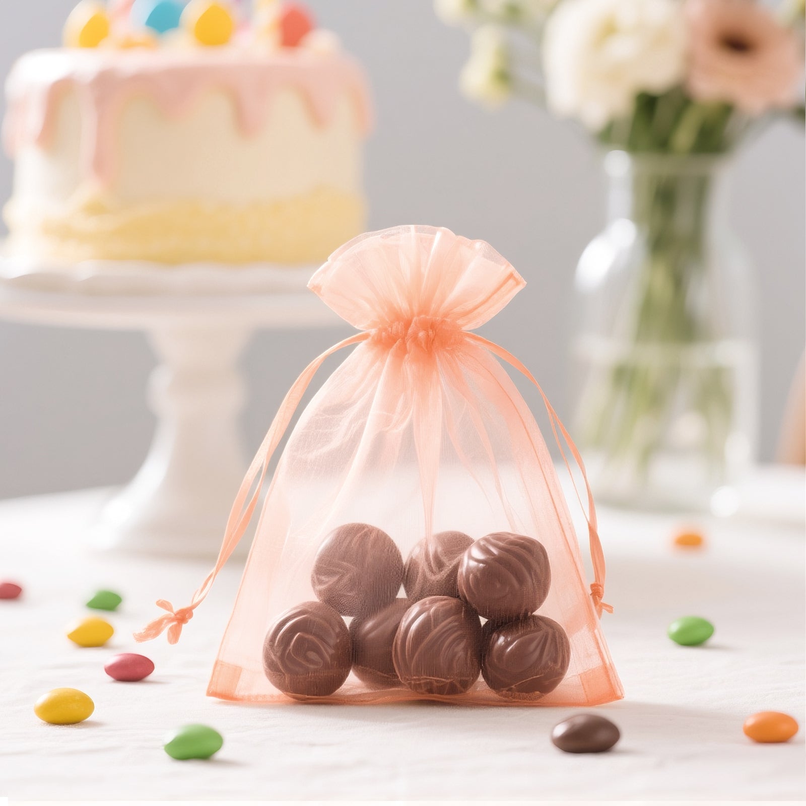 - 【Holiday Organza Bags】:Peach organza bags are perfect for holiday party favors, such as Halloween, Thanksgiving, Christmas, New Year, Valentine's Day, Easter, and other holiday. Sheer organza bags for candy, snacks, goodies, and small festival toys. Tulle bags are suitable for trick or treat candy bags, little gift bags.