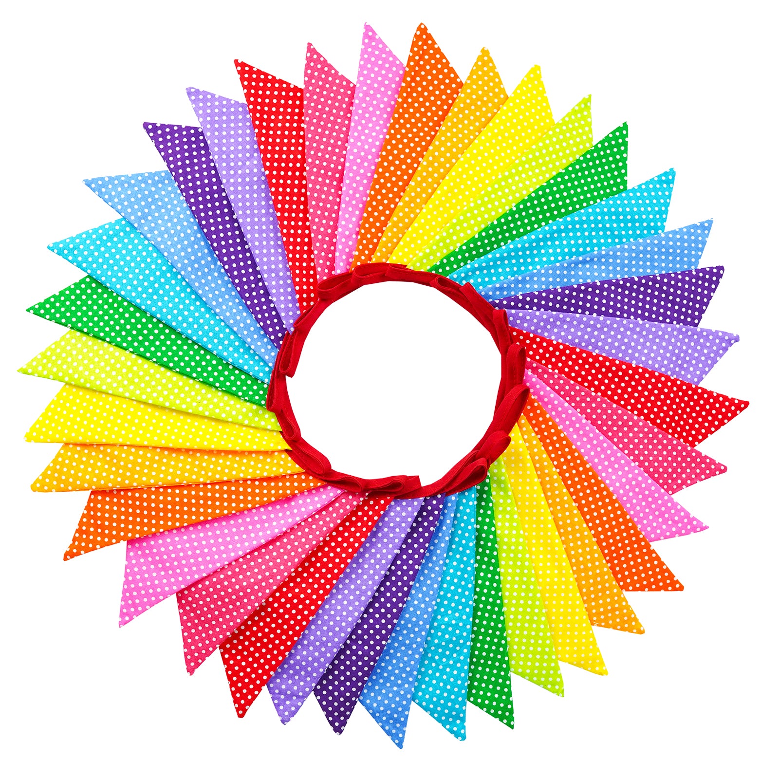 G2PLUS 36PCS Large Fabric Bunting Banner, 10M Double Sided Cotton Triangle Flag Garland-17x19CM Two Layer Dots Pennants for Wedding Birthday Parties