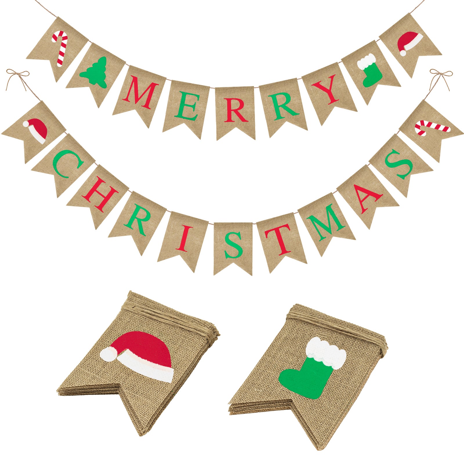 - 【Pre-Hung】This Merry Christmas hessian banner is assembled so all you need to do is fold it to put it away. Easy to unfold and hang. You may hang them separately or join them together for one long banner. Bright lettering and burlap fiber give it a homey and festive touch. I think you'll love it right away.